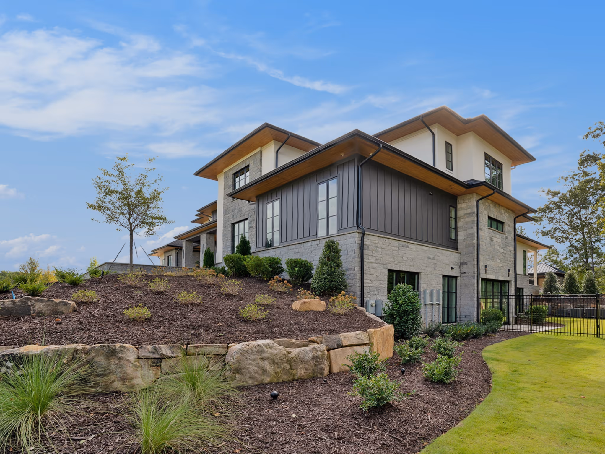 Colorful flowers, lush green lawns, and thoughtfully placed hedges and plants create a serene outdoor retreat. Every detail is designed to bring beauty and tranquility to your home, making your yard a peaceful and inviting escape.
